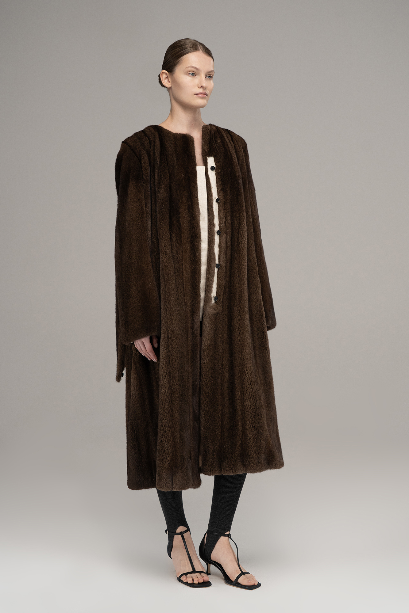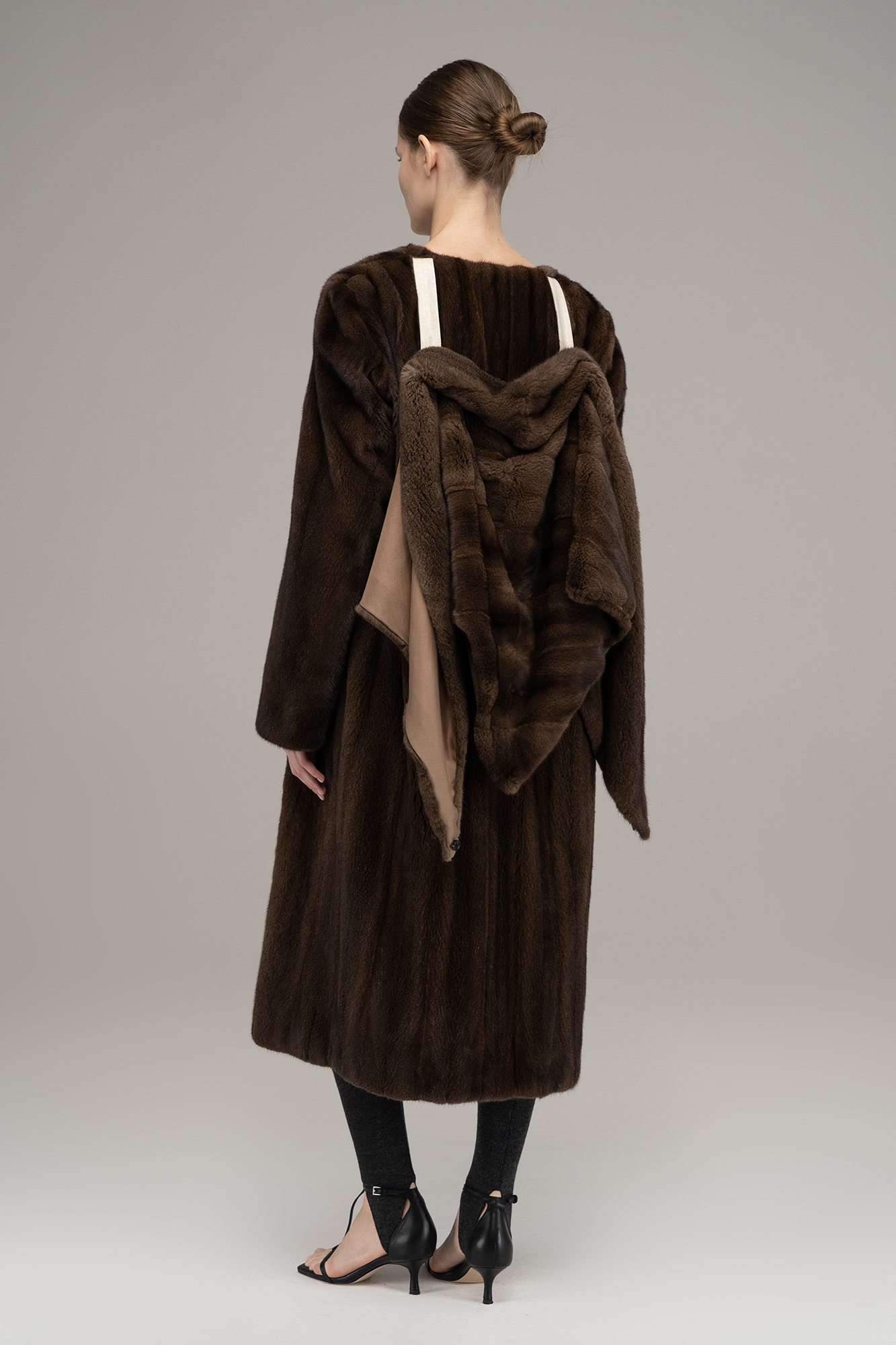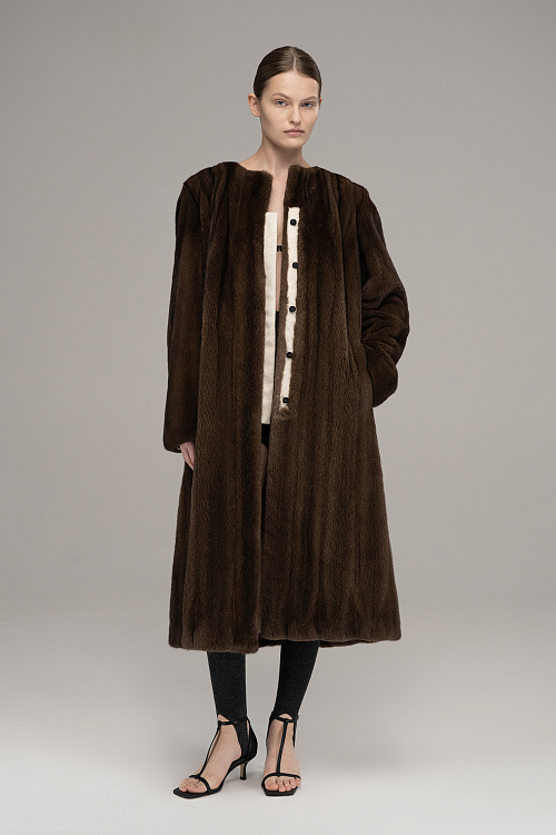 Fur coat with a scarf