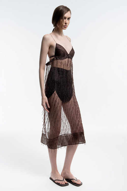 Slip dress with beads